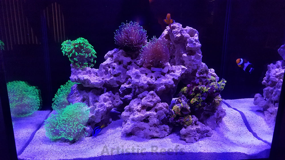 Welcome to Artistic Reefs, All about Nano reef aquariums and my personal experience with my 25 gallon JBJ Nano reef aquarium from the very beginning to now. I am no means an expert in saltwater aquariums, but this isn’t my first saltwater aquarium. Before this aquarium, I had a 75 gallon saltwater aquarium that I had for 3 years before giving it up to move out of state. It was an all fish aquarium with a sump below. Learned a lot from having that first aquarium and having been out of the hobby for over 17 years, I’m putting that experience to work with this new 25 gallon JBB nano reef aquarium.